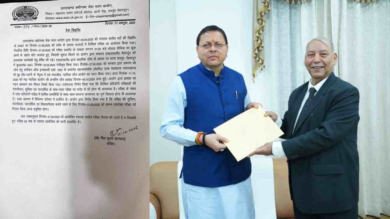 जांच आयोग ने सभी जगह हुए जनसंवाद के आधार पर अपनी रिपोर्ट सरकार को सौंप दी है। इस रिपोर्ट के आधार पर सरकार परीक्षा रद्द करने को लेकर बड़ा फैसला लिया है। उधर, भाजपा विधायक प्रतिनिधिमंडल ने शुक्रवार को सीएम धामी से मिलकर परीक्षा को छात्रहित में रद्द करने और दोबारा कराने की मांग की थी।