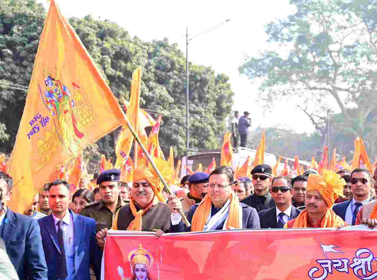 देहरादून: मुख्यमंत्री पुष्कर सिंह धामी ने शनिवार को परेड ग्राउंड देहरादून में श्री राम मंदिर प्राण प्रतिष्ठा उत्सव समिति, द्वारा आयोजित “राम राज्य शोभायात्रा“ कार्यक्रम में प्रतिभाग किया। इस दौरान मुख्यमंत्री श्री पुष्कर सिंह धामी ने कहा कि सभी राम भक्तों का 500 से अधिक वर्ष का इंतजार खत्म होकर भव्य राम मंदिर बनने का सपना पूरा हो रहा है। हजारों साधु संतों राम भक्तों, सनातन प्रेमियों के बलिदान के उपरांत इस पुण्य दिन के हम सब साक्षी बनेंगे।