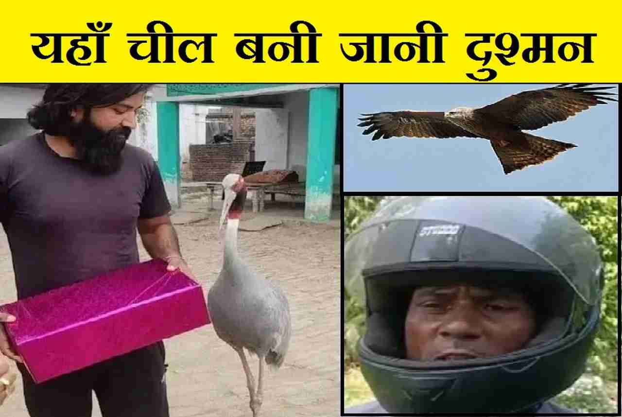 हापुड़: इन दिनों यूपी में आरिफ और सारस की दोस्ती की कहानी हर किसी की जुबां पर है, लेकिन इंसान और पक्षी की दुश्मनी भी हो सकती है। ऐसा आपने कम ही सुना होगा, पर ऐसा ही कुछ हुआ है यूपी के ही हापुड़ जनपद में जहां पर एक शख्स की चील से दुश्मनी हो गई। आए दिन चील आसमान से उड़कर आती है और इस शख्स पर हमला कर देती है कई बार हमले होने के बाद अब यह शख्स हेलमेट पहनने को मजबूर है।