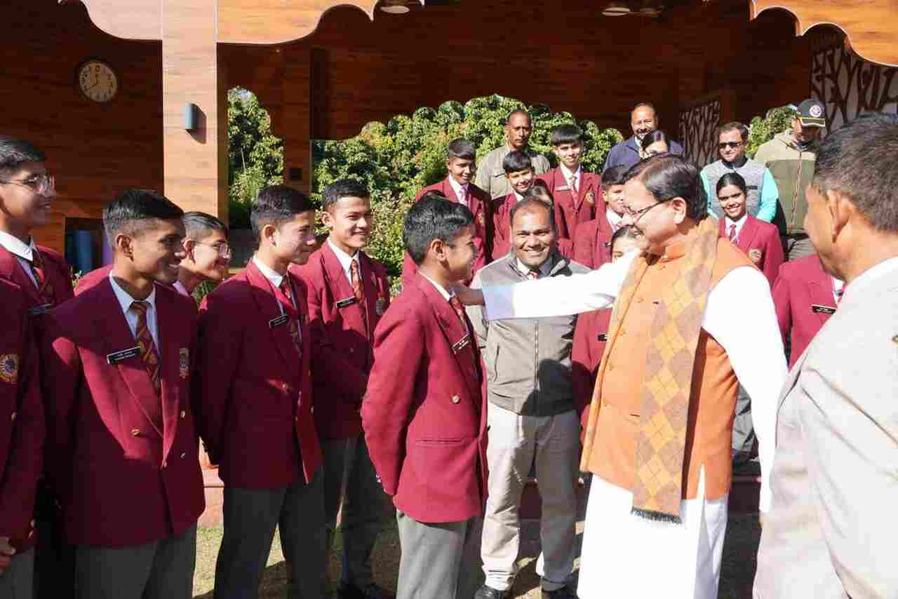 देहरादून : मंगलवार को मुख्यमंत्री पुष्कर सिंह धामी से मुख्यमंत्री आवास में सैनिक स्कूल घोड़ाखाल से शैक्षिक भ्रमण के लिए आये विद्यार्थियों ने भेंट की। मुख्यमंत्री ने सभी विद्यार्थियों के उज्ज्वल भविष्य की कामना करते हुए कहा कि प्रधानमंत्री नरेन्द्र मोदी के 2047 तक विकसित भारत के संकल्प को पूरा करने में हमारे युवाओं की महत्वपूर्ण भूमिका होगी। उन्होंने सभी विद्यार्थियों से कहा कि जिस भी क्षेत्र में कार्य करें, पूरा मन लगाकर करें। जीवन में समय का सबसे अधिक महत्व होता है, इसलिए समय का सदुपयोग करना जरूरी है।