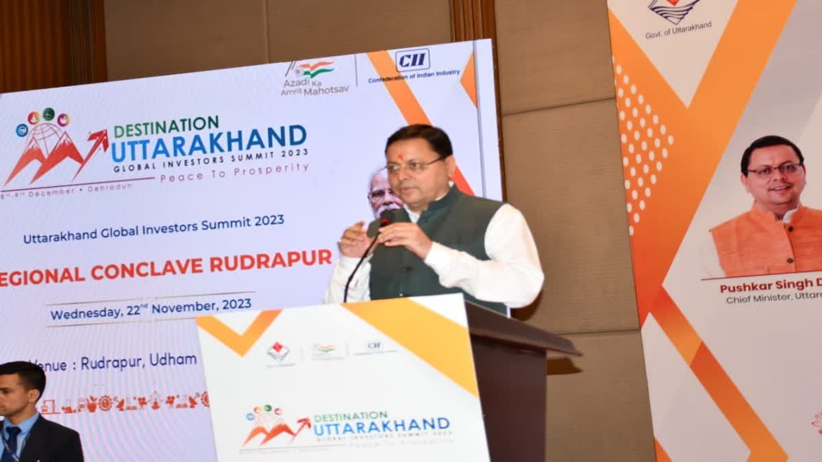 रुद्रपुरः उत्तराखंड ग्लोबल इन्वेस्टर्स समिट-2023 के तहत आज रुद्रपुर में क्षेत्रीय सम्मेलन का आयोजन किया गया. जिसमें सीएम पुष्कर सिंह धामी ने शिरकत की. इस दौरान सीएम ने सभी उद्योग मित्रों का आभार जताते हुए संबोधन किया और कहा कि जिस तरह विदेशी जमीन पर सरकार को निवेशकों का सहयोग और सर्मथन मिला. उसी तरह आप सभी को यहां भी सहयोग और समर्थन दिया जाएगा. सीएम धामी ने कहा कि हमारे सभी उद्यमी राज्य के ब्रांड एंबेसडर हैं.