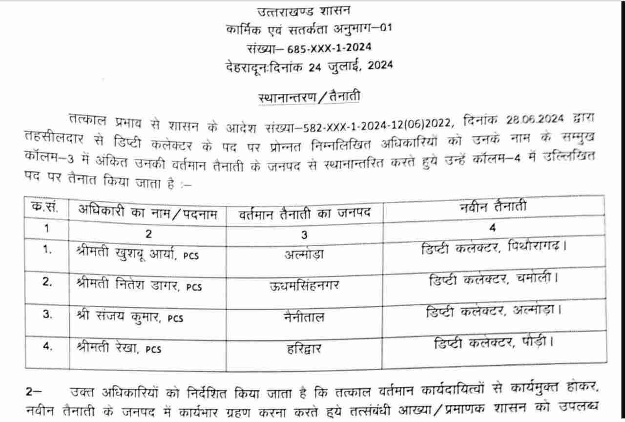 उत्तराखंड : प्रदेश में चार PCS अफसरों के तबादले, यहां पढ़ें किसे कहां मिली तैनाती खबर उत्तराखंड July 24, 2024AlokLeave a Comment on उत्तराखंड : प्रदेश में चार PCS अफसरों के तबादले, यहां पढ़ें किसे कहां मिली तैनाती देहरादून: उत्तराखंड में बुधवार को चार पीसीएस अफसरों के तबादले किए गए। शासन ने इसके आदेश जारी कर दिए हैं। अल्मोड़ा में तैनात पीसीएस खुशबू आर्या को डिप्टी कलेक्टर पिथाैरागढ़ बनाया गया है। Related Spread the love
