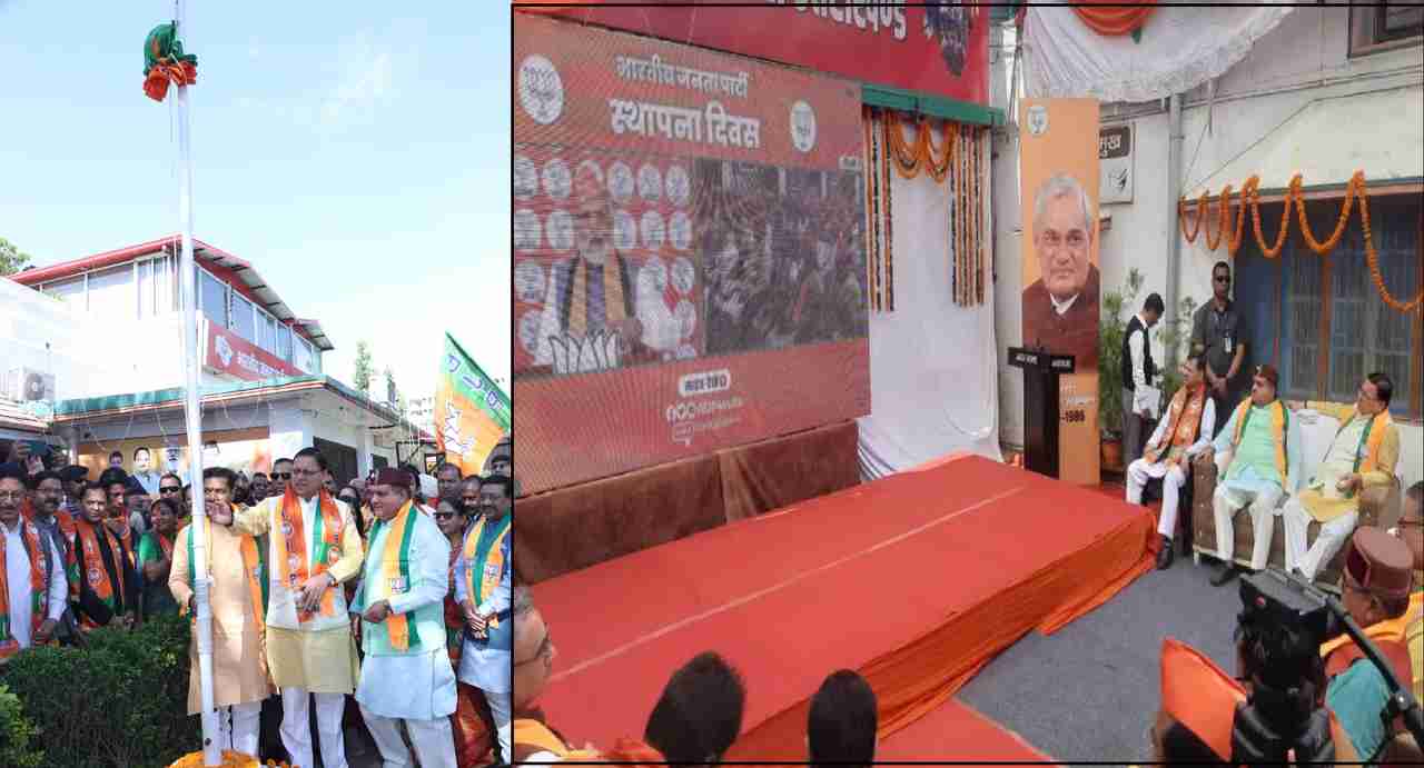 गुरुवार 6 अप्रैल को भारतीय जनता पार्टी अपना 43वां स्थापना दिवस पूरे देश में मना रही है. वहीं इस मौके पर उत्तराखंड भाजपा मुख्यालय पर भी भारतीय जनता पार्टी अपना स्थापना दिवस भव्य स्वरूप में मना रही है. 43वें स्थापना दिवस के मौके पर भाजपा मुख्यालय पर मुख्यमंत्री पुष्कर सिंह धामी, प्रदेश अध्यक्ष महेंद्र भट्ट, सरकार के कई मंत्री, विधायक और देहरादून मेयर सहित पार्टी के सभी छोटे बड़े कार्यकर्ता मौजूद रहे.