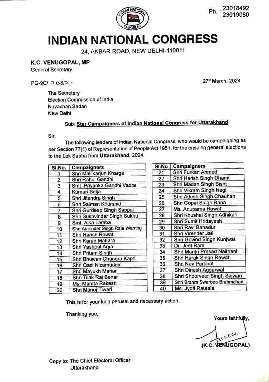 उत्तराखंड के 30 वरिष्ठ कांग्रेसी नेताओं को सूची में मिली जगह