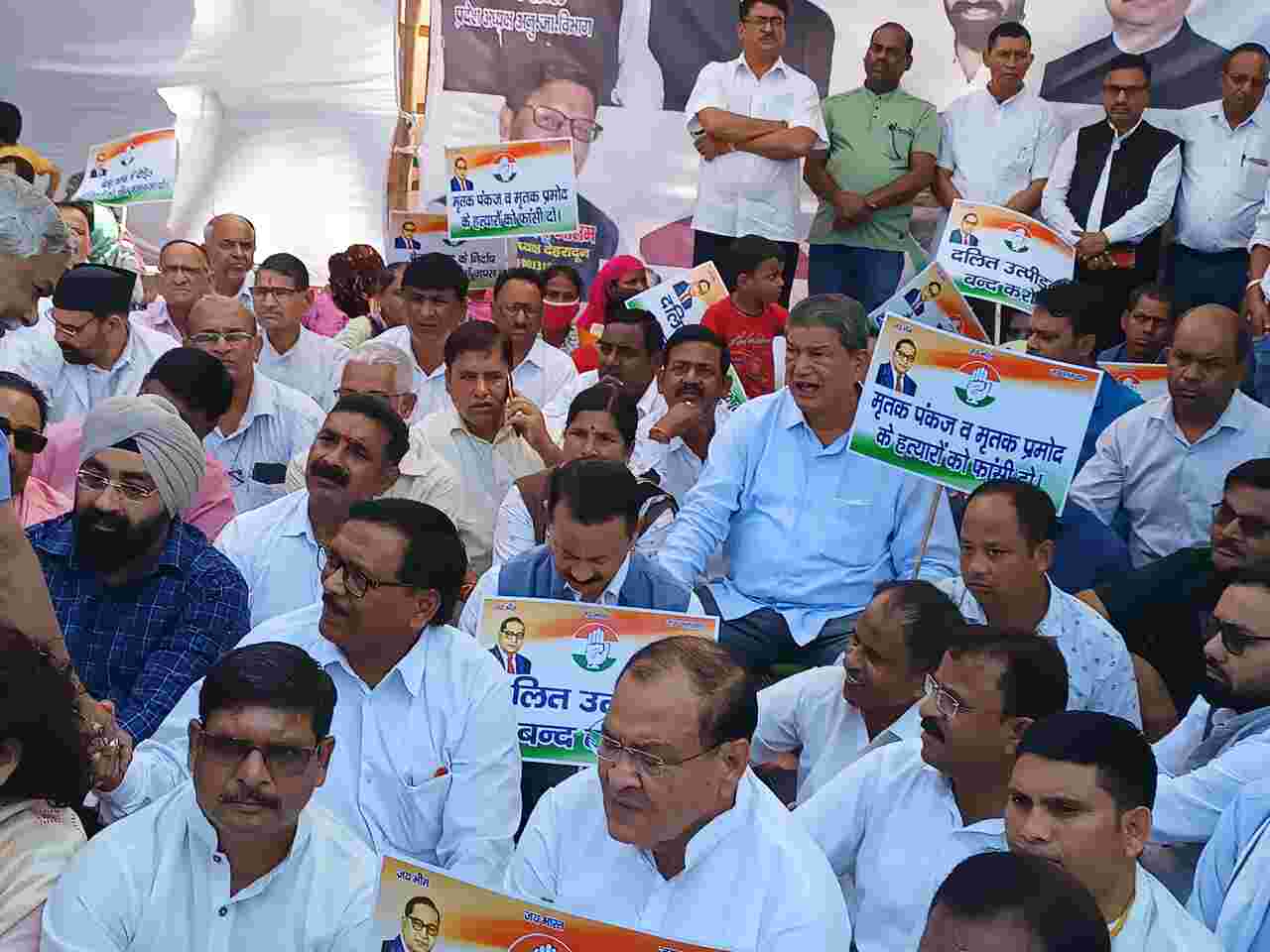 देहरादूनः रुड़की के बेलड़ा गांव में दलित युवक की मौत, दलित व महिलाओं पर पुलिस प्रशासन और दबंगों की ओर से उत्पीड़न समेत पीड़ितों को न्याय दिलाने की मांग को लेकर कांग्रेस अनुसूचित जाति प्रकोष्ठ ने धरना प्रदर्शन किया. इसके तहत तमाम कांग्रेस नेता व कार्यकर्ता गांधी पार्क के बाहर एकत्रित हुए और सरकार के खिलाफ जमकर हल्ला बोला. इस दौरान कांग्रेस प्रदेश अध्यक्ष करन माहरा, पूर्व मुख्यमंत्री हरीश रावत, नेता प्रतिपक्ष यशपाल आर्य, हरिद्वार ग्रामीण विधायक अनुपमा रावत, प्रताप नगर विधायक विक्रम नेगी समेत कई नेताओं ने सरकार को घेरा.