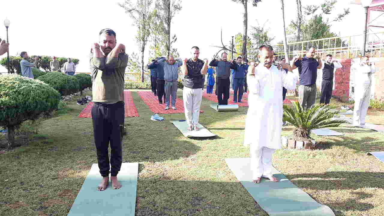 नैनीताल के डीएसए खेल मैदान में योग