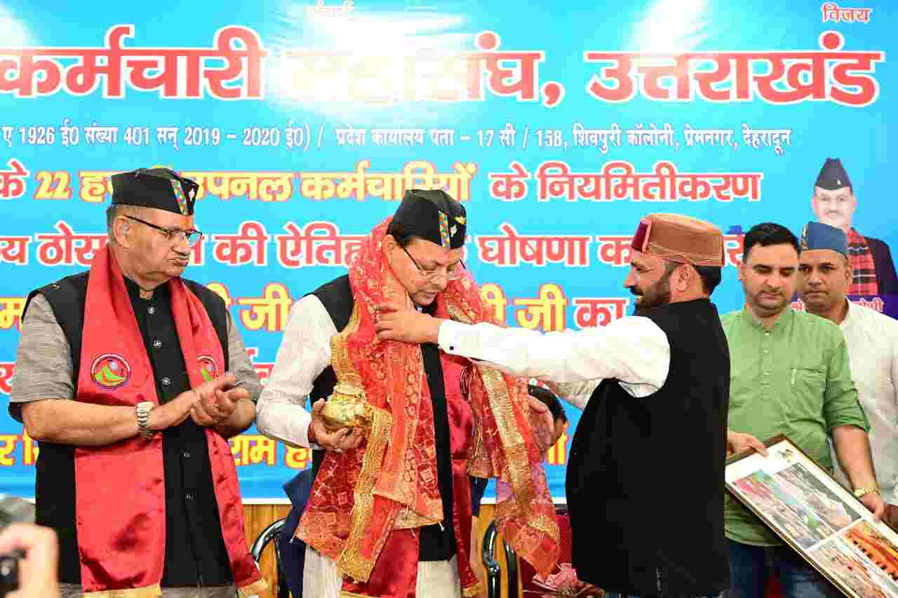 सीएम ने कहा कि इस अभिनंदन की हकदार प्रदेश की सवा करोड़ जनता भी है, जिसने उन्हें राज्य की सेवा करने का अवसर दिया है. सीएम ने कहा कि राज्य सरकार जल्द ही ठोस और प्रभावी नीति बनाकर उपनल कर्मचारियों को नियमित करने का कार्य शुरू करेगी. जिसे निर्धारित समय सीमा के भीतर चरणबद्ध तरीके से किया जाएगा.
