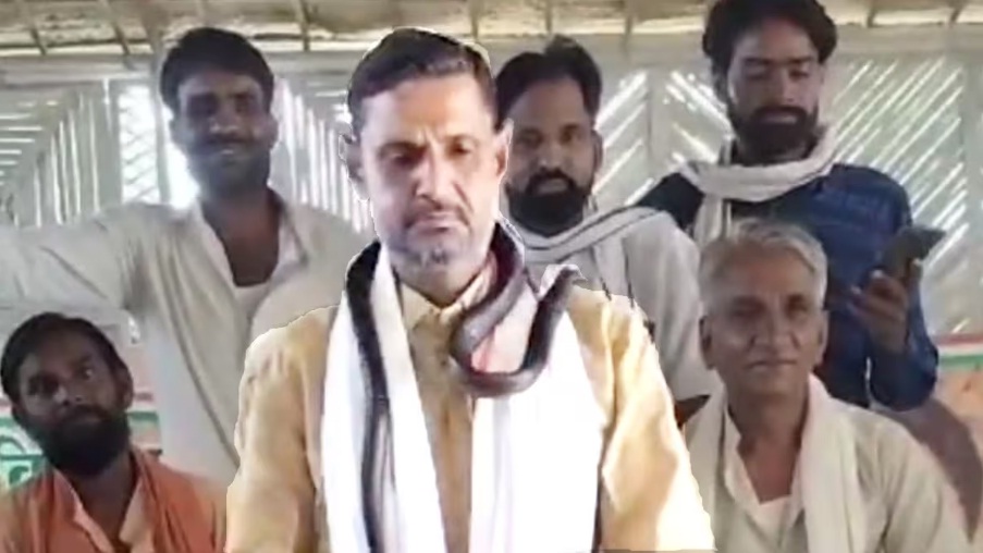 श्योपुर: अपने अजीबो-गरीब बयान और प्रदर्शनों को लेकर आए दिन सुर्खियों में रहने वाले मध्यप्रदेश की श्योपुर विधानसभा से कांग्रेस विधायक बाबू जंडेल एक बार फिर चर्चा में हैं. इस बार विधायक ने अपने जन्मदिन के मौके पर गले में माला की जगह काला सांप पहनकर समर्थकों की शुभकामनाएं लीं. विधायक के अनोखे कारनामे का वीडियो अब सोशल मीडिया पर तेजी से वायरल हो रहा है. दरअसल, शुक्रवार को बाबू जंडेल का जन्मदिन था. उनके निवास में बनी विधायक कुटी पर शुभकामनाएं देने वाले समर्थकों का तांता लगा हुआ था. तभी एक सपेरा काले सांप को लेकर वहां पहुंच गया, जिसे देखकर कांग्रेस विधायक ने उसका सांप पिटारे से बाहर निकाल लिया और फिर उसे अपनी गले में डाल लिया.