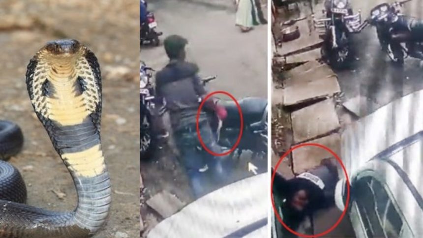 Viral Video: Cobra bit a young man on a moving bike, CCTV footage of the incident went viral.#viralnews #cobra #Indore #MadhyaPradesh #india #viral #viralvideo #snake pic.twitter.com/FfQB3JRFHT