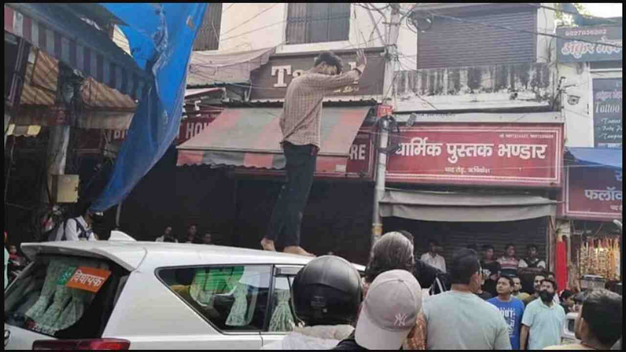जाम से परेशान युवक ने किया हंगामा, नहीं मिला रास्ता तो विधायक की कार की छत पर चढ़ गया