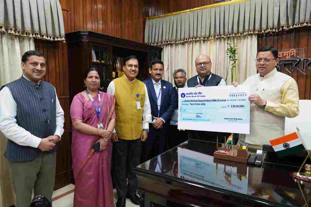देहरादून: जोशीमठ में भू-धंसाव वाले क्षेत्र से विस्थापित लोगों के राहत और पुनर्वास के लिए भारतीय स्टेट बैंक द्वारा गुरूवार को उत्तराखण्ड राज्य आपदा राहत कोष में 02 करोड़ रूपये की आर्थिक सहायता प्रदान की गई। मुख्यमंत्री पुष्कर सिंह धामी से मुख्यमंत्री कैम्प कार्यालय में भारतीय स्टेट बैंक, नई दिल्ली मण्डल के मुख्य महाप्रबंधक कल्पेश कृ. अवासिया ने भेंट कर 02 करोड़ रूपये का चेक सौंपा। मुख्यमंत्री ने प्रभावितों की सहायता के लिए इस सहयोग राशि के लिए भारतीय स्टेट बैंक का आभार व्यक्त किया। मुख्यमंत्री ने कहा कि राज्य के चिन्हित चार वाइब्रेंट विलेज माणा, नीति , मलारी एवं गूंजी में अवस्थापना विकास से संबंधित अनेक कार्य किये जाने हैं, इसके लिए भी उन्होंने एस.बी.आई से सहयोग की अपेक्षा की।