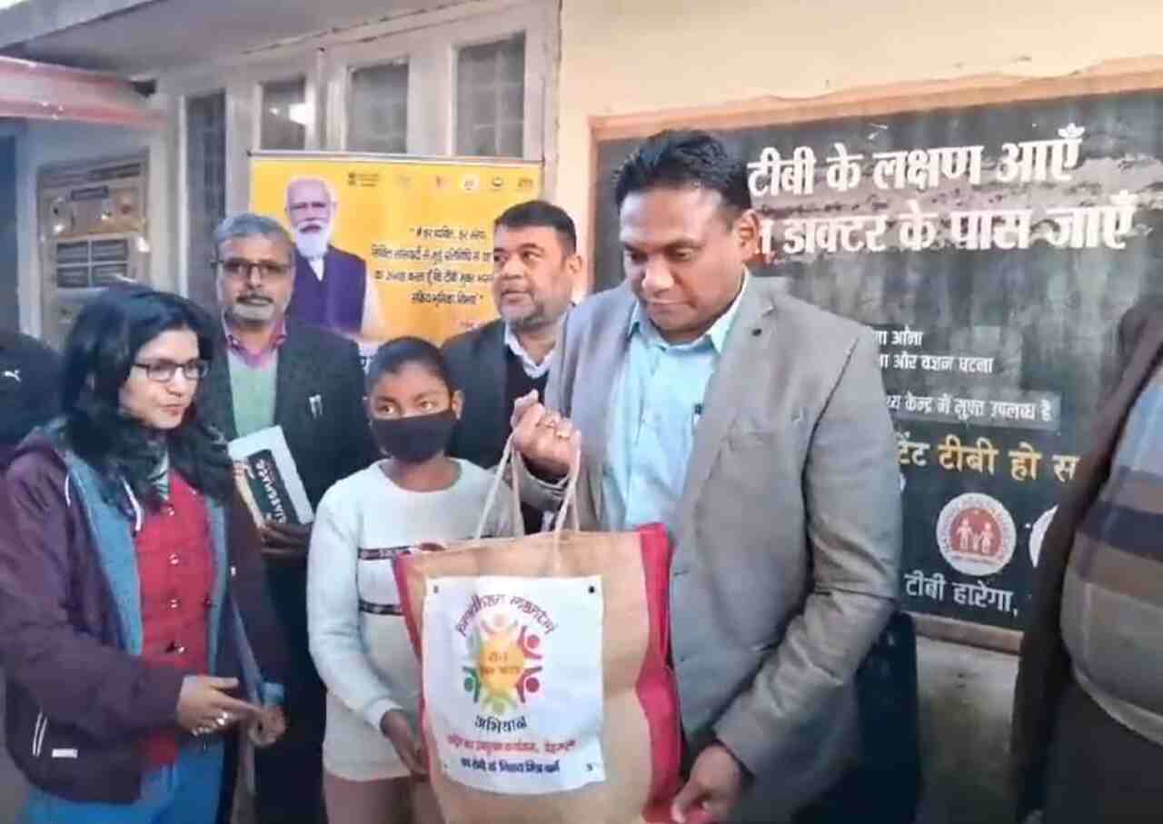 आज दिनांक 10 जनवरी 2024 प्रधानमंत्री टीबी मुक्त भारत अभियान के अंतर्गत स्वास्थ्य सचिव डॉ. आर राजेश कुमार द्वारा जिला क्षय रोग कार्यालय, देहरादून में नि-क्षय मित्र बनकर क्षय रोगी को मासिक पोशाहार दिया गया तथा उनके द्वारा आम जनमानस में अपील की गई की समाज के सभी वर्ग आगे आकर कार्यक्रम की सफलता मे सहयोग करें। सचिव महोदय द्वारा 01 साल पूर्व दो क्षय रोगियों को नि-क्षय मित्र बन पोशाहार दिया गया था जो कि वर्तमान के स्वस्थ्य हो गये है।