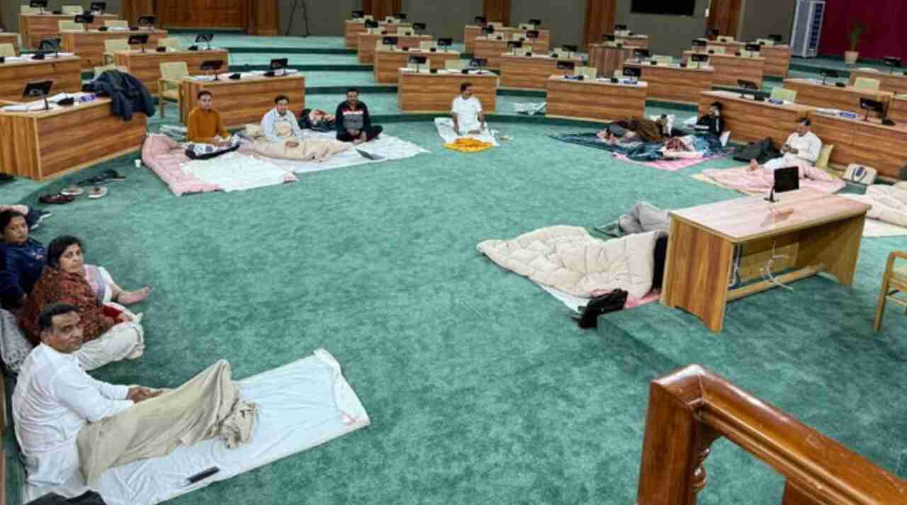 दिनभर भारी विरोध के बाद रात में सदन के अंदर विपक्ष का कंबल कैंप, दिया धरना