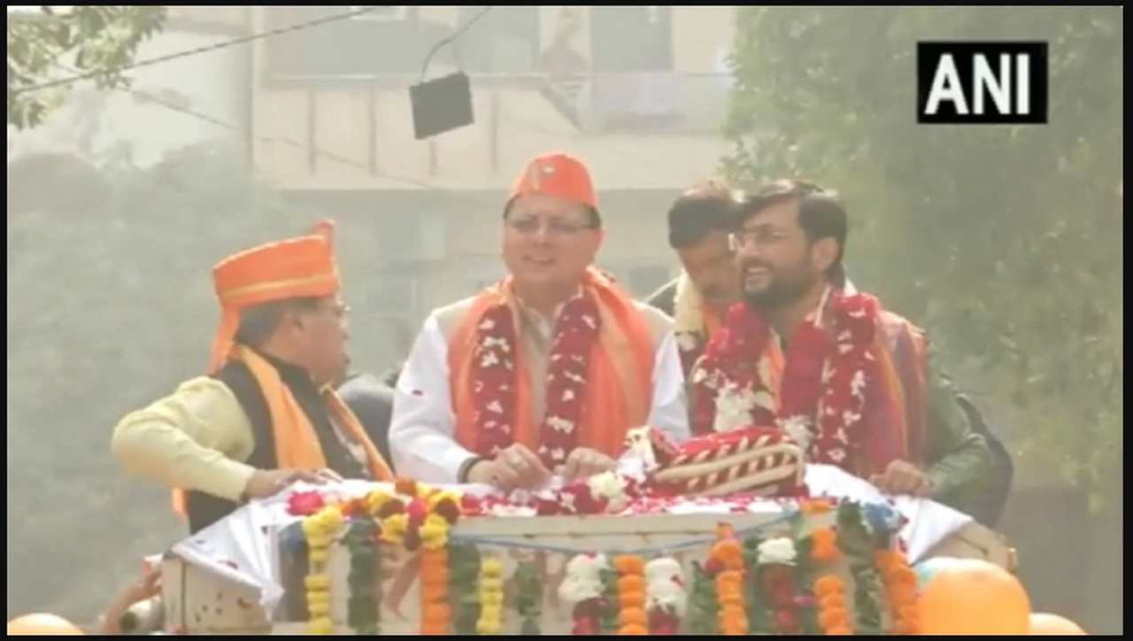 दिल्ली MCD चुनाव प्रचार थमने से पहले, सीएम धामी ने किया रोड शो, देखें VIDEO