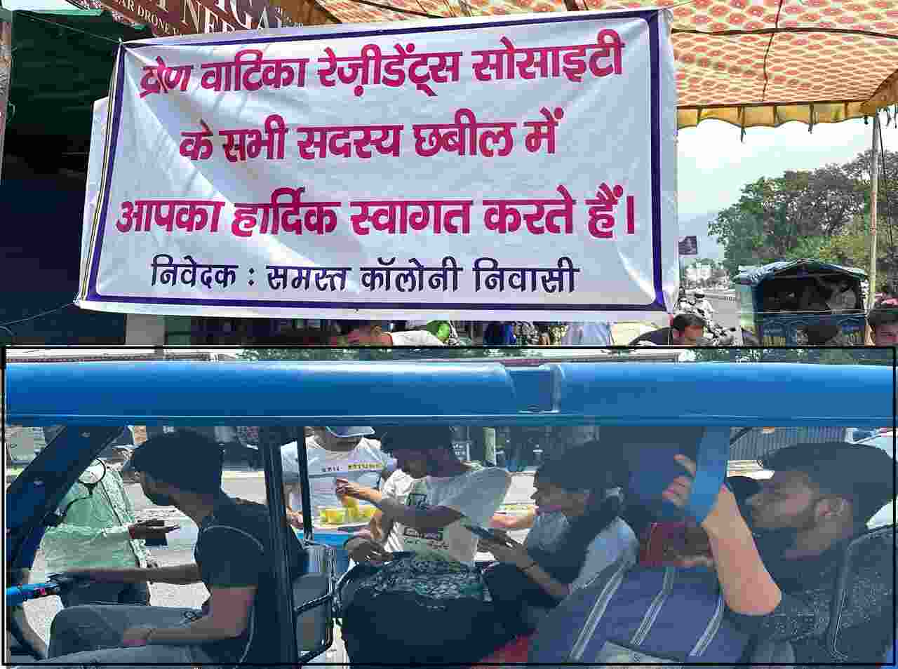 देहरादून: आज 12 मई 2024 को सहस्त्रधारा रोड स्थित द्रोण वाटिका कॉलोनी द्वारा कॉलोनी के मुख्य द्वार पर छबील लगाकर मीठे शरबत का वितरण किया गया समिति के गणमान्य अध्यक्ष राजदेव सिंह यादव कॉलोनी के सचिव सुधीर मेहता एवं अन्य पदाधिकारी द्वारा सुबह 10:00 बजे से दोपहर 1:00 बजे तक 1500 से अधिक लोगों को मीठे शरबत का वितरण कर पुण्य कार्य किए गए कॉलोनी वासियों ने कॉलोनी के मुख्य द्वार पर टेंट लगाकर सहस्त्र धारा मुख्य मार्ग पर आने जाने वाले सभी पर्यटकों को राहगीरों को बुजुर्गों को बच्चों को विनम्र आग्रह कर रोक कर ठंडे पानी का शरबत पिलाने का कार्य किया। कॉलोनी के गणमान्य सदस्यों द्वारा व्यक्तिगत रूप से सहयोग कर भयंकर गर्मी मे जनसामान्य को राहत दिलाने के उद्देश्य से द्रोण वाटिका सोसायटी के मुख्य द्वार पर पर छबील लगाकर शर्बत पिलाने का कार्य किया। सोसाइटी द्वारा मोटरसाईकिल, स्कूटर, ट्रेक्टर, बसो से जा रहे लोगो से हाथ जोड़कर शरबत पीने की गुजारिश की।