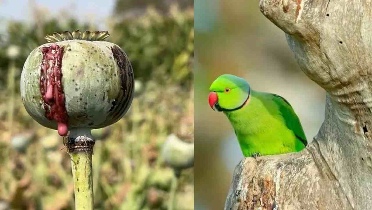 नशेड़ी तोतों से परेशान हुए किसान, खेत में से चुराते हैं अफीम का फल
