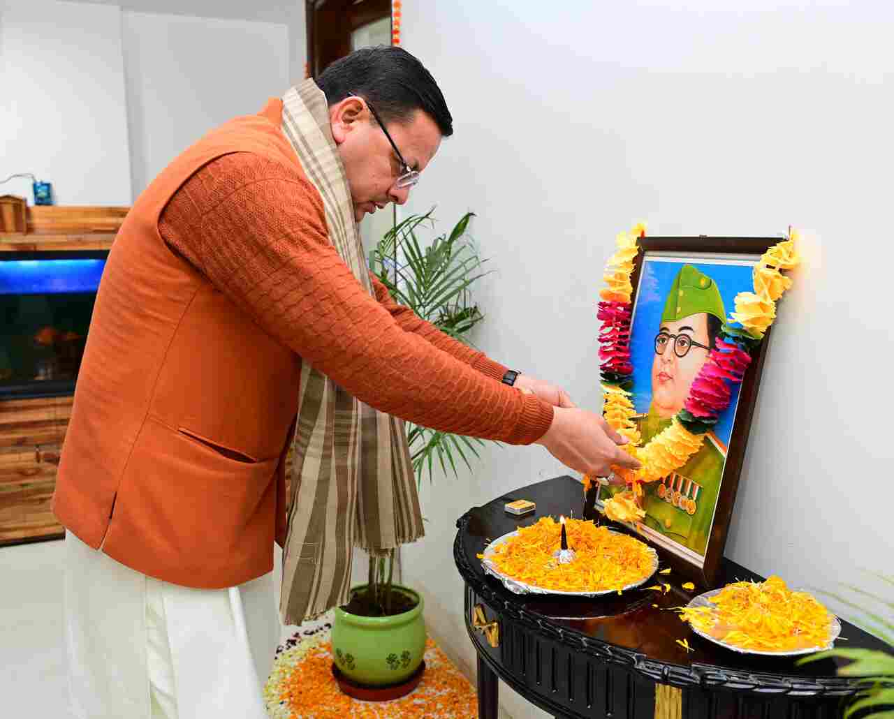 देहरादून: मुख्यमंत्री पुष्कर सिंह धामी ने नेताजी सुभाष चंद्र बोस की जयंती पर मुख्यमंत्री आवास में उनके चित्र पर श्रद्धासुमन अर्पित कर श्रद्धांजलि दी। मुख्यमंत्री ने कहा कि आजाद हिन्द फौज के नेतृत्वकर्ता, भारतीय स्वतंत्रता संग्राम के महानायक, नेताजी सुभाष चंद्र बोस ने राष्ट्र की स्वाधीनता के लिए अपना जीवन समर्पित किया।