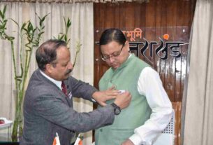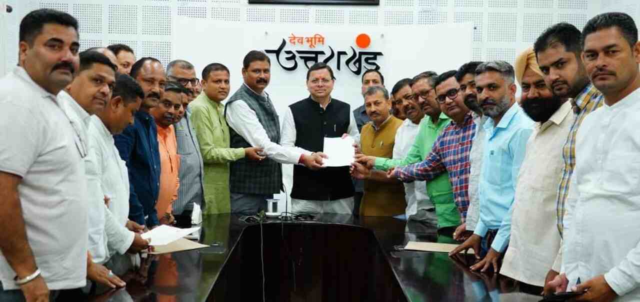 देहरादून: मुख्यमंत्री पुष्कर सिंह धामी से शनिवार को मुख्यमंत्री कैम्प कार्यालय में नैनीताल जनपद के भाजपा जिलाध्यक्ष प्रताप सिंह बिष्ट एवं मेयर हल्द्वानी डॉ. जोगेन्द्र सिंह रौतेला के नेतृत्व में शिष्टमंडल ने भेंट की। इस अवसर पर उन्होंने जनपद नैनीताल में रेरा(रियल एस्टेट रेगुलेटरी ऑथोरिटी) से किसानों को आ रही समस्याओं से अवगत कराया।