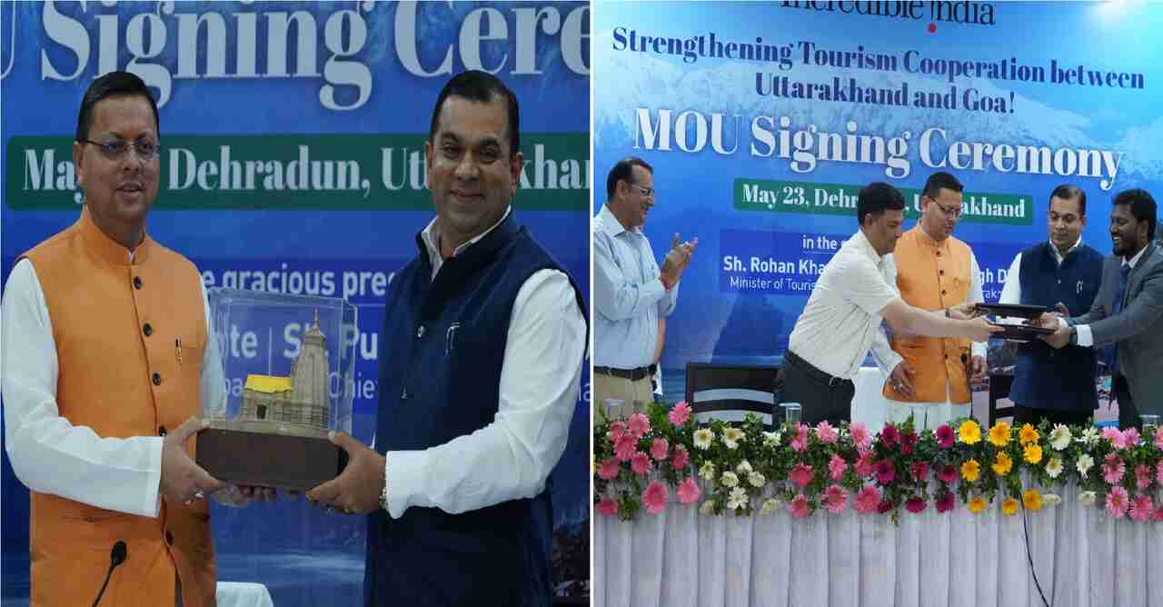 देहरादून: पर्यटन के विभिन्न आयामों में आपसी सहयोग को बढ़ावा देने के लिये उत्तराखण्ड और गोवा राज्य मिलकर कार्य करेंगे। दोनो राज्य पर्यटन के क्षेत्र में द्विपक्षीय सहयोग के माध्यम से संयुक्त कार्य योजना के आधार पर पर्यटकों की संख्या बढ़ाने तथा पर्यटन सुविधाओं के विकास में दोनों राज्यों के मध्य यात्रा सुविधाओं को बेहतर बनाने के भी प्रयास किये जायेंगे। इस संबंध में मंगलवार को सांय मुख्यमंत्री आवास स्थित मुख्य सेवक सदन में मुख्यमंत्री पुष्कर सिंह धामी तथा गोवा के पर्यटन मंत्री रोहन खौंटे की उपस्थिति में समझौता ज्ञापन (एम.ओ.यू.) पर हस्ताक्षर किये गये। समझौता ज्ञापन पर सचिव पर्यटन उत्तराखण्ड सरकार सचिन कुर्वे तथा गोवा के पर्यटन निदेशक सुनील अचिंपका द्वारा हस्ताक्षर किये गये। मुख्यमंत्री पुष्कर सिंह धामी ने इस अवसर को ऐतिहासिक बताते हुए कहा कि यह पहल अन्य राज्यों को भी प्रेरित करेगी आज गोवा से देहरादून की पहली डायरेक्ट उड़ान को इतिहास के पन्नों में दर्ज करा दिया इस सीधी उड़ान सेवा का लाभ दोनों राज्यों के नागरिक भी उठा सकेंगे जिससे दोनों राज्यों में पर्यटन को बढ़ावा मिलेगा