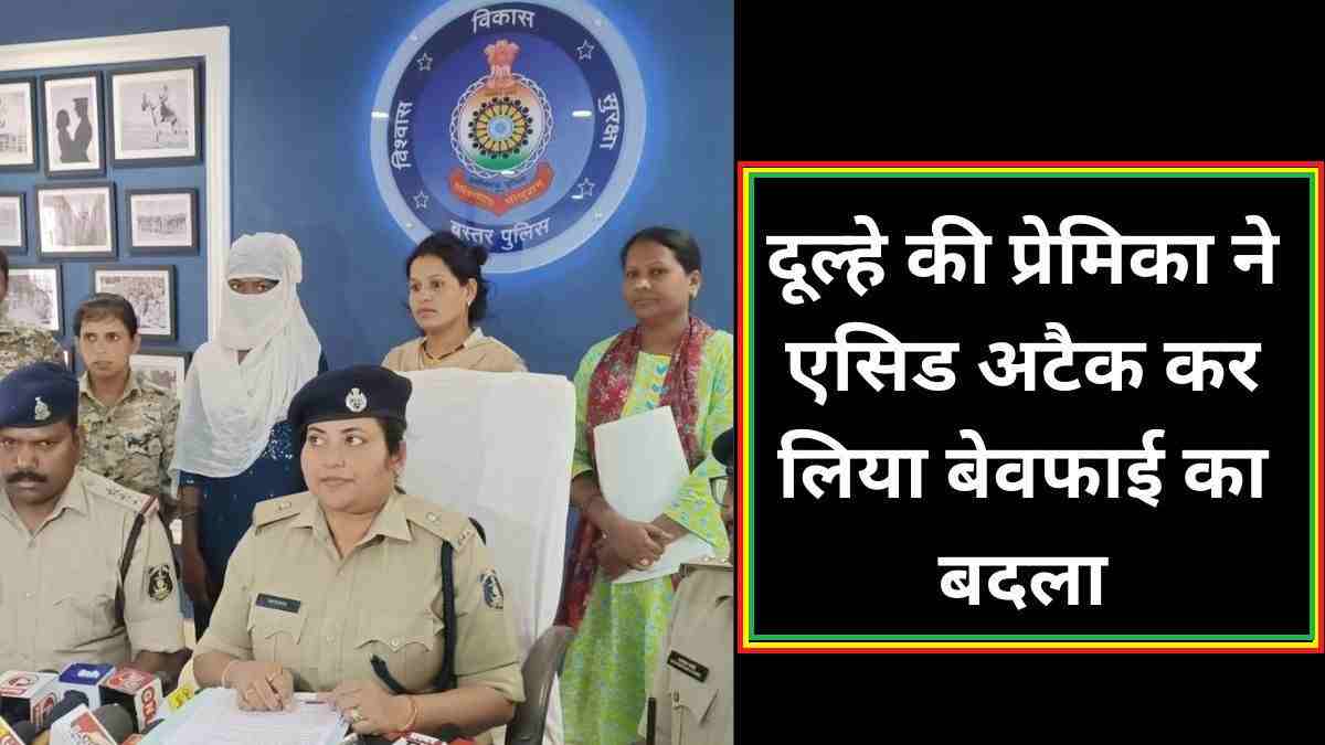 बस्तर: छत्तीसगढ़ के बस्तर जिले में पिछले सप्ताह शादी के मंडप में बैठे दूल्हा-दुल्हन पर एसिड अटैक किसी और ने नहीं, बल्कि दूल्हे की पूर्व प्रेमिका किया था। दूल्हे की पूर्व प्रेमिका उसकी बेवफाई से नाराज थी। जिसके बाद उसने इस खतरनाक वारदात को अंजाम दिया। पूर्व प्रेमिका के एसिड अटैक में 10 लोग झुलस गए थे। बस्तर पुलिस ने अब उसकी 23 साल की पूर्व प्रेमिका को गिरफ्तार कर लिया है। घटना 19 अप्रैल की है, जब बस्तर के छोटे अमाबल गांव में दूल्हा डमरूधर बघेल (25) की 19 वर्षीय युवती से शादी हो रही थी। इसी दौरान दूल्हे की पूर्व प्रेमिका ने तेजाब से हमला किया था। एसिड अटैक में दूल्हा, दुल्हन और शादी में शामिल 10 बाराती मामूली रूप से झुलस गए थे। पुलिस ने गांव में लगे 12 सीसीटीवी कैमरों की फुटेज की जांच के बाद उस महिला को पकड़ने में कामयाबी हासिल की, जिसने हमले के दौरान अपनी पहचान छिपाने के लिए खुद को एक पुरुष के रूप में बदल लिया था।