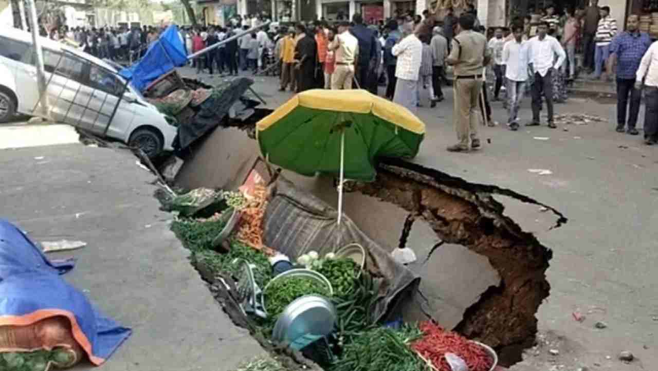 पुलिस के मुताबिक गोशामहल इलाके में धंसी सड़क (Hyderabad Goshamahal Road Collapse) नाले के ऊपर बनाई गई थी. शुक्रवार दोपहर करीब 2 बजे वहां पर फल- सब्जियों की ठेलियां लगी हुई थी. काफी लोग अपने वाहनों से वहां पर चीजें खरीदने के लिए पहुंचे हुए थे. अचानक तेज आवाज के साथ सड़क बीच में से फट गई और फल-सब्जी से लदी ठेलियां गड्डे में समा गई. सड़क पर खड़ी गाड़ियां भी गड्डे में गिर गईं. हादसे के दौरान सड़क पर खड़े कई लोग भी गड्ढे में जा गिरे, जिन्हें बाद में बाहर निकाला गया.