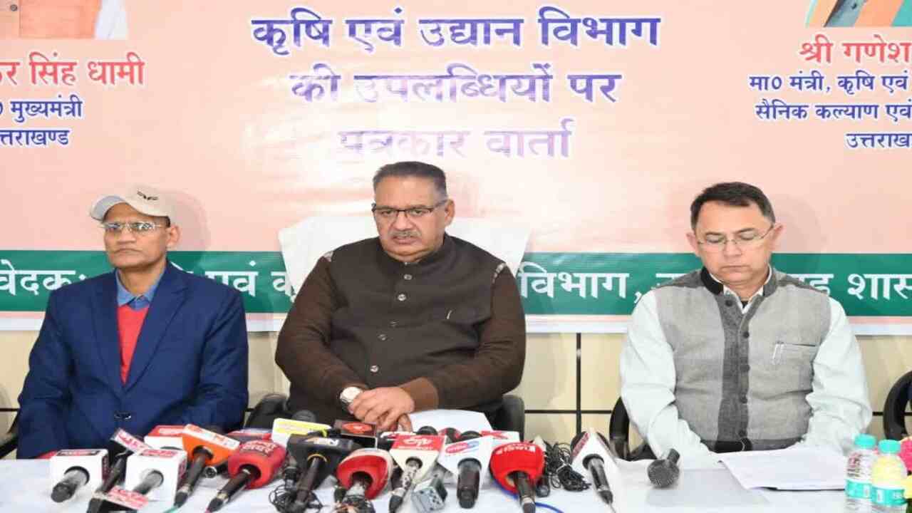 दरअसल, कृषि मंत्री गणेश जोशी ने 13 फरवरी गुरुवार को कृषि एवं उद्यान विभाग की उपलब्धियां को लेकर प्रेस कॉन्फ्रेंस की. इस दौरान कृषि एवं कृषक कल्याण मंत्री ने कहा,