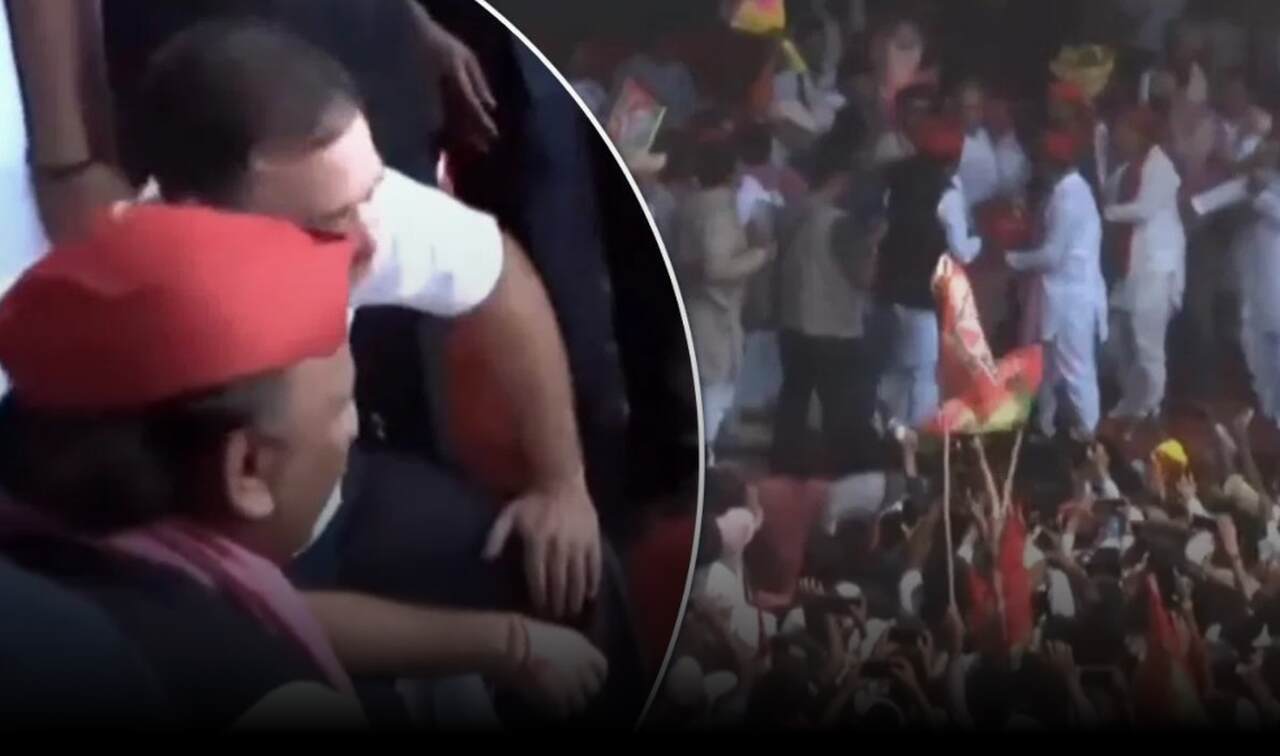 फूलपुर में राहुल और अखिलेश की रैली में हंगामा, बैरिकेडिंग फांदकर स्टेज के करीब पहुंचे कार्यकर्ता