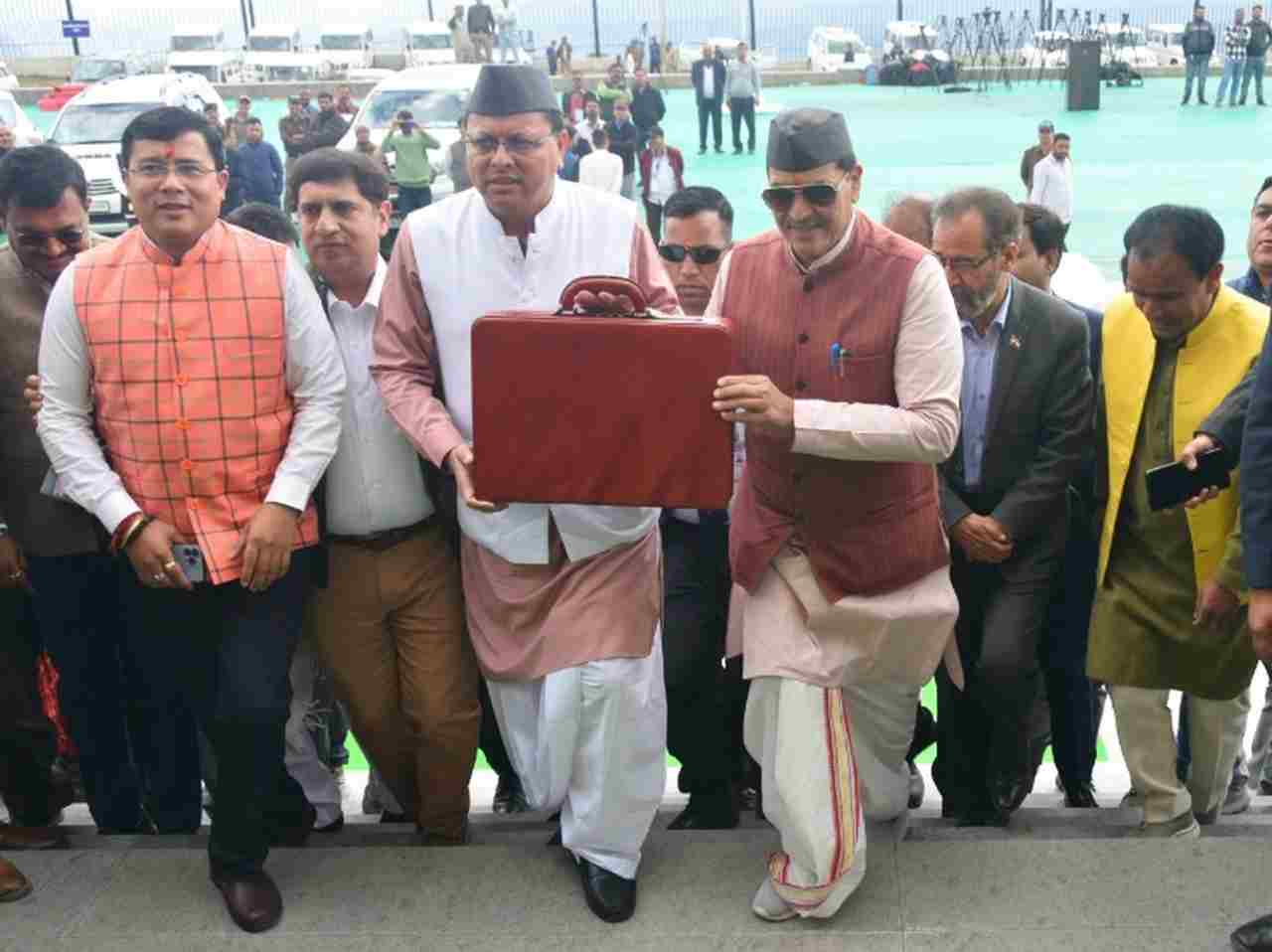 बजट पेश करने सदन मे धोती कुर्ते और पहाड़ी टोपी पहनकर पहुंचे थे सीएम धामी और वित्त मंत्री प्रेमचंद
