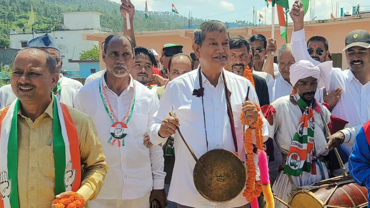 बागेश्वरः उत्तराखंड के बागेश्वर उपचुनाव को लेकर प्रचार प्रसार जोरों पर चल रहा है. कांग्रेस के दिग्गज नेता और पूर्व मुख्यमंत्री हरीश रावत ने भी बागेश्वर विधानसभा सीट उपचुनाव की कमान संभाल ली है. आज हरदा ने गरुड़ में एक बड़ी जनसभा को संबोधित किया. इस दौरान उनका खास अंदाज देखने को मिला. उन्होंने गले में दमाऊं लेकर कांग्रेस प्रत्याशी बसंत कुमार के पक्ष में प्रचार प्रसार किया. साथ ही भारी मतों से जीत का दावा भी किया. दरअसल, बागेश्वर उपचुनाव में कांग्रेस पार्टी के उम्मीदवार बसंत कुमार को जीत दिलाने के लिए पूर्व मुख्यमंत्री हरीश रावत आज गरुड़ पहुंचे. जहां कार्यकर्ताओं ने उनका भव्य स्वागत किया. उन्होंने कांग्रेस प्रत्याशी बसंत कुमार के पक्ष में केडी पांडे रामलीला मैदान में जनसभा की और लोगों को संबोधित किया.