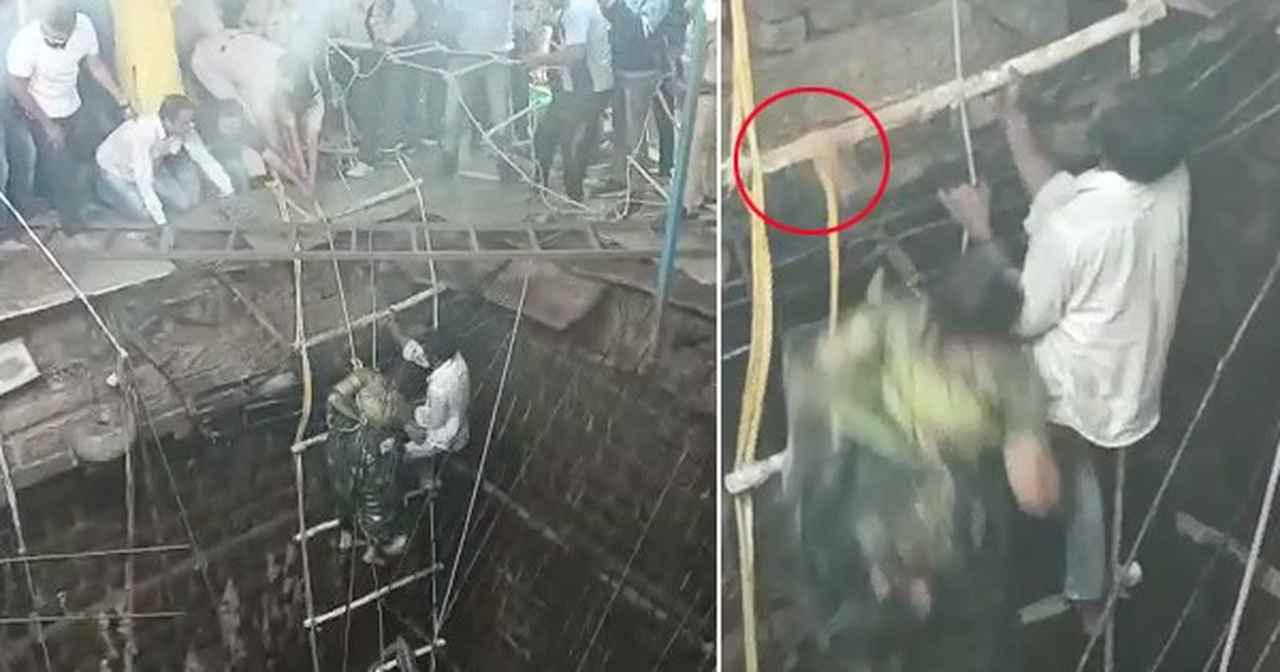 इंदौर: मध्य प्रदेश के इंदौर में स्नेह नगर में रामनवमी को हुए बावड़ी हादसे का एक वीडियो सामने आया है। मौत से लड़कर एक महिला लगभग ऊपर आ चुकी थी कि अचानक रस्सी टूट गई। इस रस्सी से मानों महिला के जीवन की डोर बंधी थी। रस्सी टूटते ही पहले से बेसुध नजर आ रही महिला कई फीट नीचे गिरी और उसकी मौत हो गई। बाद में उसका शव निकालने के लिए काफी मशक्कत करनी पड़ी।