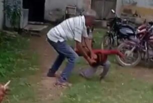 औरैया: उत्तर प्रदेश के औरैया जनपद का एक वीडियो सोशल मीडिया में जमकर वायरल हो रहा है। पत्नी के मायके जाने से दुखी पति नशे में धुत होकर अपने मासूम बेटे के साथ सड़क पर लेट गया। इस दौरान वह मासूम को बाहों में जकड़े हुए पड़ा रहा और लोगों की भीड़ तमाशबीन बनी रही। शराबी पति के इस घटना की चर्चा पूरे जिले में हो रही है। लोग सोशल मीडिया में वीडियो को शेयर कर तरह-तरह की बातें कर रहे हैं।