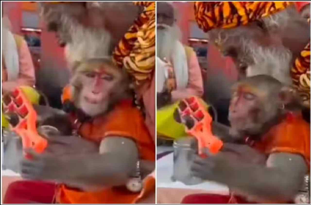 हिंदू मान्यताओं के अनुसार भगवान श्री राम के भक्त हनुमान, एक वानर थे, इसलिए वायरल हो रहा बंदर का ये वीडियो लोगों का दिल जीत रहा है क्योंकि वीडियो में इस बंदर को भजन करते हुए कैप्चर किया गया है. वीडियो में इस बंदर को लोगों की भीड़ के बीच, सबके साथ बैठकर भगवान का भजन करते हुए देखा जा सकता है. भगवा रंग के कपड़े पहने और माथे पर टीका लगाए, इस बंदर की वाद्य यंत्र बजाने में मदद करते एक शख्स को देखा जा सकता है.