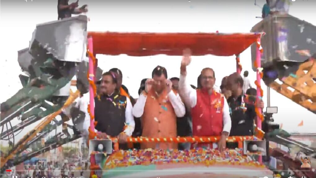 देहरादून: उत्तराखंड के युवा मुख्यमंत्री पुष्कर सिंह धामी मध्य प्रदेश के सागर ज़िले में खुरई विधानसभा क्षेत्र में, प्रचार के लिए गए उत्तराखण्ड के युवा व तेजस्वी मुख्यमंत्री, पुष्कर सिंह धामी पर बुलडोज़र द्वारा पुष्प वर्षा की गई । जानकारों की माने तो बीते दिनों उत्तराखंड मे सीएम धामी द्वारा अतिक्रमण हटाने और लैंड जिहाद के खिलाफ सख्त कारवाई की गई उसका असर मध्य प्रदेश में भी हुआ है लिहाजा सीएम के सम्मान में बुलडोज़र द्वारा पुष्प वर्षा की गई ।