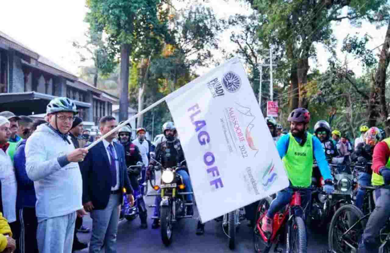 देहरादून: उत्तराखंड के मुख्यमंत्री पुष्कर सिंह धामी ने मंगलवार को मुख्यमंत्री कैम्प कार्यालय से मसूरी विंटर कार्निवाल के अंतर्गत साइकिल रैली का शुभारंभ किया. मुख्यमंत्री ने कहा कि मसूरी विंटर कार्निवाल पर्यटन को बढ़ावा देने वाला उत्सव है. पर्यटकों को आकर्षित करने के लिए साइकिल रैली का आयोजन किया जा रहा है. यह साइकिल रैली देहरादून से मसूरी तक होगी. मुख्यमंत्री पुष्कर सिंह धामी ने कहा कि उत्तराखंड का नैसर्गिक सौन्दर्य पर्यटकों को आकर्षित करता है. राज्य सरकार द्वारा पर्यटन को बढ़ावा देने के लिए निरंतर प्रयास किए जा रहे हैं. राज्य में सड़क, हवाई एवं रेल कनेक्टिविटी का तेजी से विस्तार हो रहा है. राज्य में नए टूरिस्ट डेस्टिनेशन विकसित किए जा रहे हैं. इस अवसर पर जिलाधिकारी देहरादून सोनिका, अपर जिलाधिकारी के के मिश्रा, जिला पर्यटन अधिकारी जसपाल चौहान, जिला कमांडेंट होमगार्ड डॉ. राहुल सचान उपस्थिति थे.