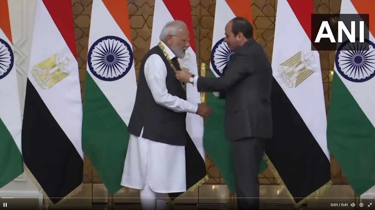 #WATCH | Egyptian President Abdel Fattah al-Sisi confers PM Narendra Modi with 'Order of the Nile' award, in Cairo