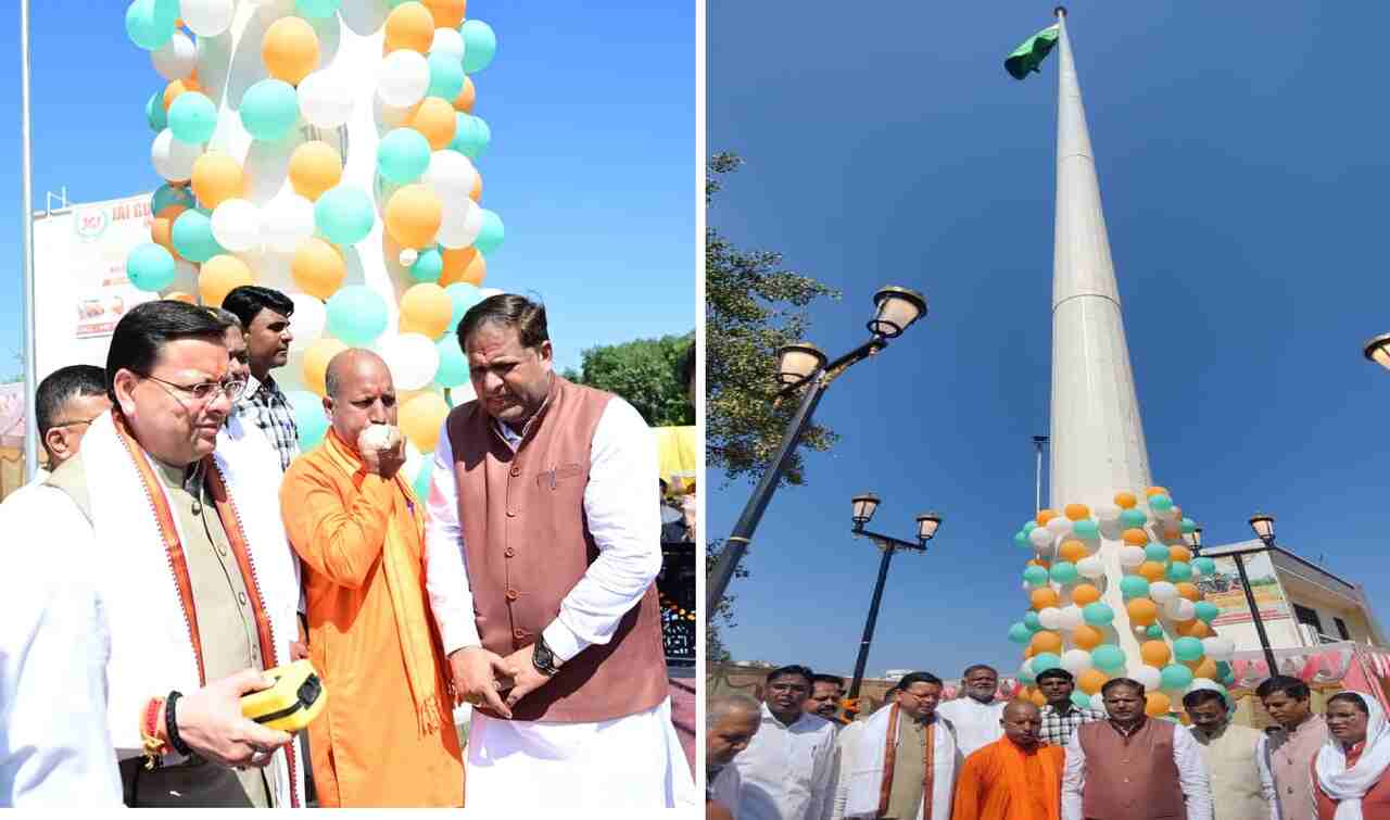 खटीमा: मुख्यमंत्री पुष्कर सिंह धामी ने कंजाबाग तिराहा खटीमा में मुख्यमंत्री घोषणा के अंतर्गत कार्यदायी संस्था लघु सिंचाई विभाग द्वारा 47.42 लाख की लागत से स्थापित किए गए 215 फीट ऊँचे राष्ट्रीय ध्वज का विधिवत पूजा अर्चना कर फीता काटकर व ध्वजारोहण कर लोकार्पण किया।