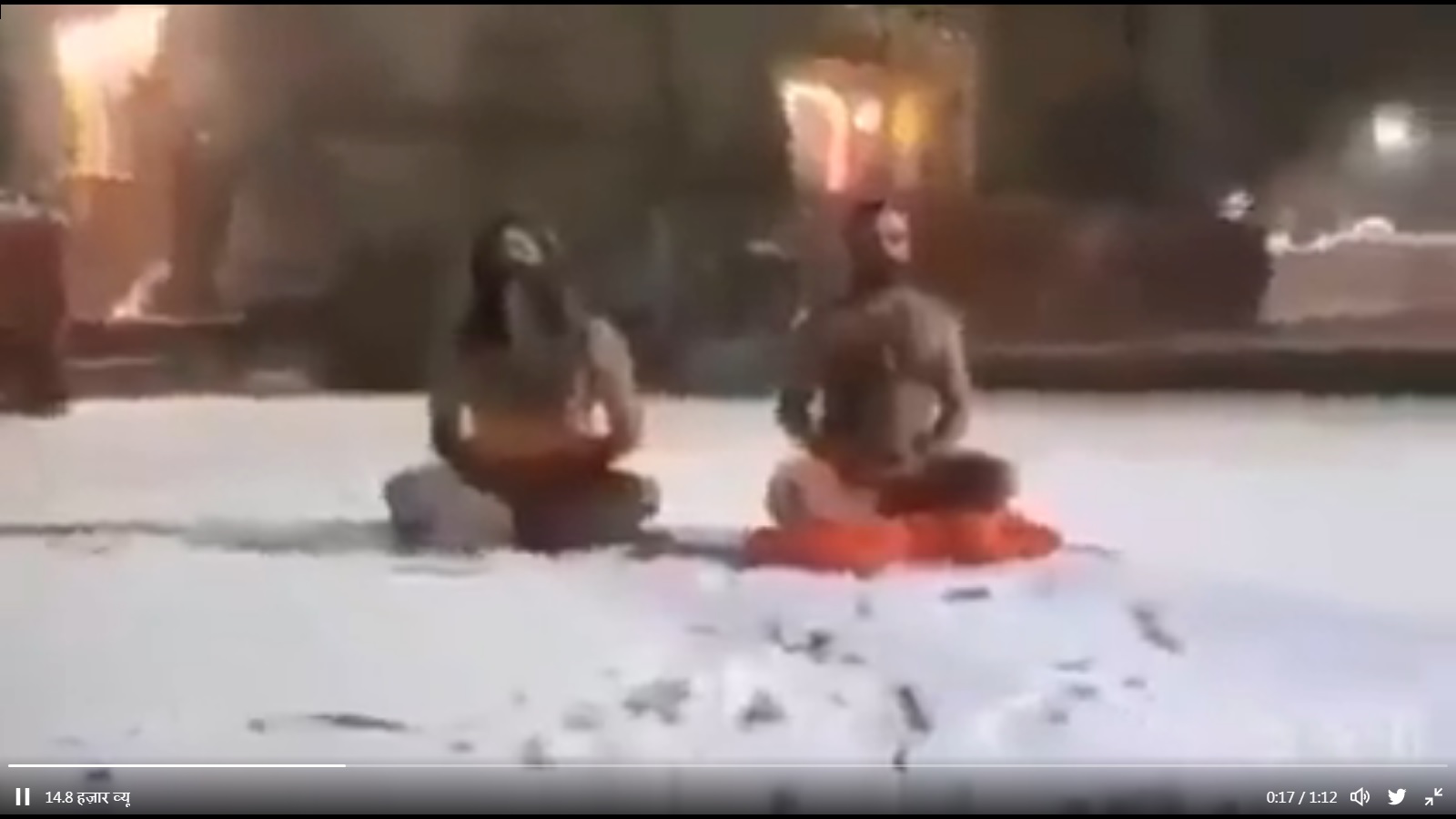 वीडियो में देखा जा सकता है कि बर्फ की सफेद चादर के बीच दो साधु नंगे बदन में बैठे हैं। ये दोनों बाबा शिव के ध्यान में इस कदर खोए हुए हैं कि उन्हें ठंड का कोई अहसास ही नहीं हो रहा। दोनों का विश्वास भी इतना मजबूत लग रहा कि वे अपने आस-पास हो रही कड़ाके की ठंड से बेफिक्र लग रहे हैं और बस अपने ध्यान में ही खोए हुए हैं।