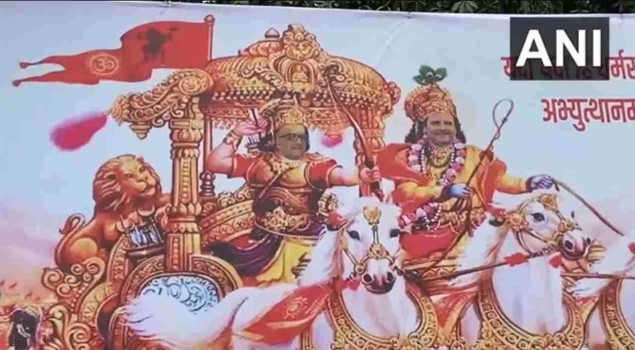 कानपुर: कांग्रेस की ‘भारत जोड़ो न्याय यात्रा’ आज कानपुर पहुंच रही है। इस बीच कांग्रेस कार्यकर्ताओं ने शहर में जगह-जगह पोस्टर लगाएं हैं। पोस्टर में कांग्रेस सांसद राहुल गांधी को ‘भगवान कृष्ण’ और यूपी कांग्रेस प्रमुख अजय राय को ‘अर्जुन’ के रूप में दिखाया गया है। पोस्टर में देखा जा रहा है कि एक रथ पर राहुल गांधी और अजय राय सवार हैं। यह पोस्टर विवादित बताया जा रहा है क्योंकि राहुल गांधी की तुलना सीधे भगवान कृष्ण से की गई है। इस पोस्टर पर सियासी हंगामा मचना तय है।