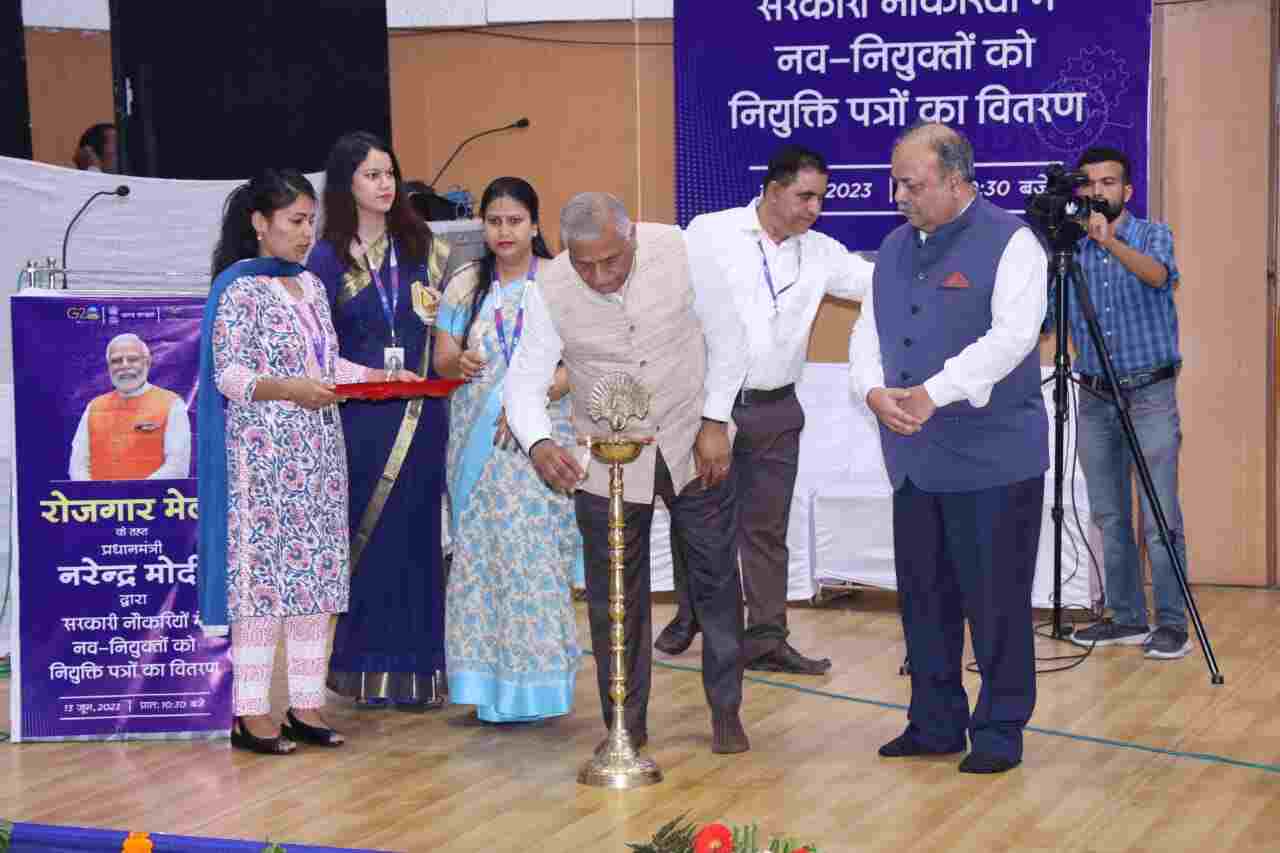 रोजगार मेले में प्रधानमंत्री नरेन्द्र मोदी द्वारा ऑनलाइन माध्यम से युवाओं को नियुक्ति पत्र प्रदान किये गये तथा युवाओं को सम्बोधित किया गया। प्रधानमंत्री जी ने अपने सम्बोधन में कहा कि रोजगार प्रक्रिया पारदर्शी है। आज देश के 43 केन्द्रों में 70000 युवाओं को नियुक्ति पत्र प्रदान किये जा रहे हैं। सरकार के विभिन्न विभागों यथा: AIIMS, IRDE, SIDBI, DOT, P&T, MINISTRY OF DEFENCE, CPWD तथा भारतीय स्टेट बैंक एवं वाणिज्यिक बैंकों में नियुक्ति पाने वाले युवा शामिल थे।