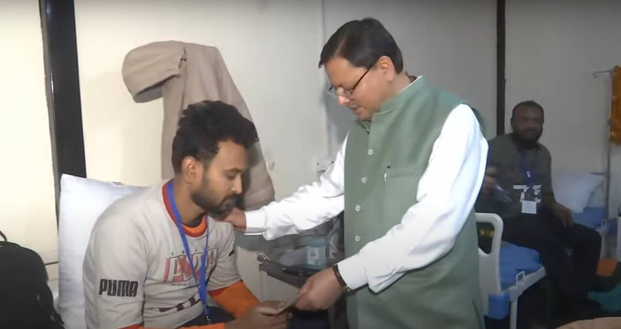 मजदूरों का हालचाल जानने मुख्यमंत्री पुष्कर सिंह धामी उत्तरकाशी पहुंचे जहां से वह सीधे सामुदायिक स्वास्थ्य केंद्र चिन्यालीसौड़ पहुंचे और सभी 41 श्रमिकों को सहायता राशि की चेक वितरित किए ।