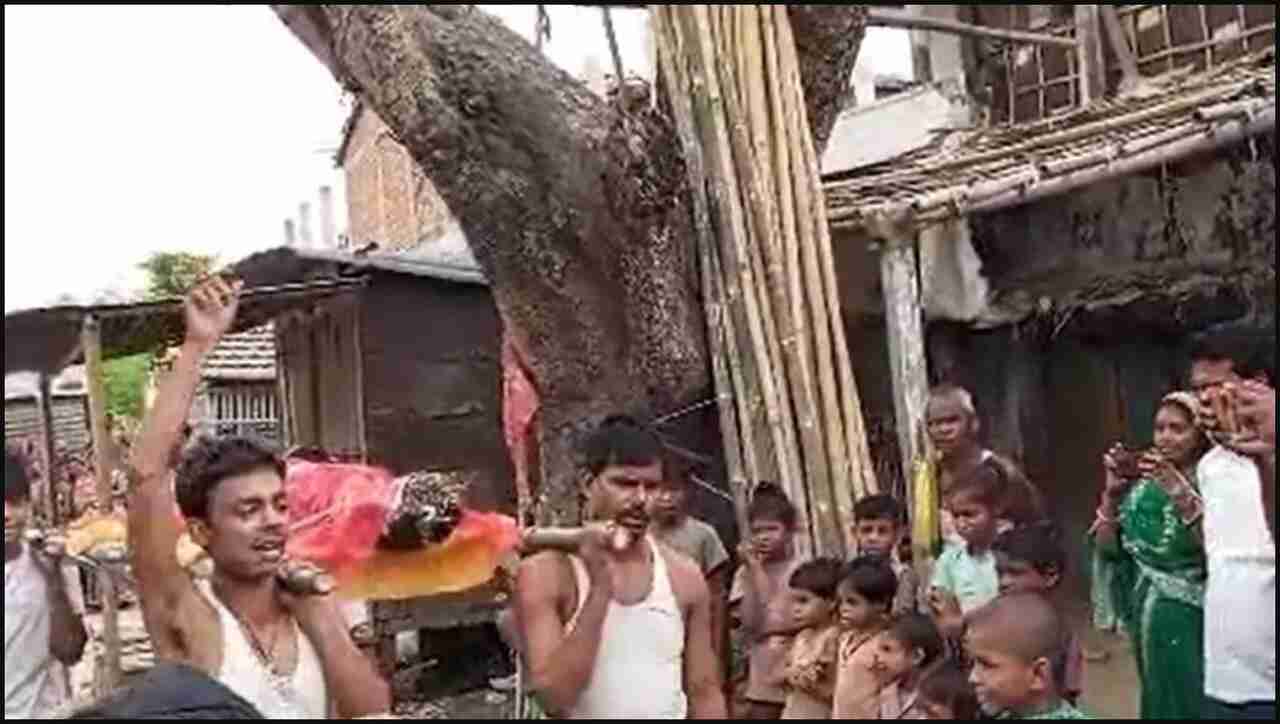 पटना: बिहार के पूर्णिया में एक लड़की शादी से एक दिन पहले अपने प्रेमी के साथ भाग गई. जबकि उसकी शादी की सभी तैयारियां पूरी कर ली गई थी. हल्दी मेंहदी, का रस्म भी पूरा हो गया था. अगले दिन बारात आनेवाली थी. इससे पहले वह अपने प्रेमी के साथ भाग गई और शादी करके परिजनों को फोटो वीडियो भेज दिया. इस घटना से लड़की का भाई इस कदर नाराज हो गया कि उसने अपनी बहन के जिंदा रहते हुए ही उसका दाह संस्कार कर दिया. नाराज भाई ने बहन का पुतला बना कर अर्थी सजाया. अर्थी पर उसने बहन की तस्वीरें भी लगाई. इसके बाद राम नाम कहकर उसका शवयात्रा निकाला. फिर श्मशान घाट में जाकर उसका दाह संस्कार किया. इसके साथ ही उसने अपनी बहन के नाम का पिंडदान भी कर दिया. साथ ही मृत्युभोज भी किया.