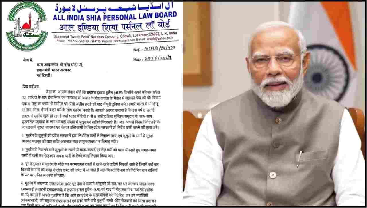 लखनऊ: शिया पर्सनल लॉ बोर्ड ने आठ जुलाई से शुरू होने वाले मोहर्रम को लेकर पीएम मोदी को पत्र लिखा है। बोर्ड ने प्रधानमंत्री से जुलूस में सुरक्षा व्यवस्था मजबूत करने की मांग की है। इसके साथ ही ताजिया निकालने वाले रूट पर बिजली तार दुरुस्त करने की मांग की गई है। बोर्ड ने पत्र में मोहर्रम के दौरान आने वाली परेशानी का भी जिक्र किया है। जुलूस के रास्ते में बेहतर इंतजाम की अपील की गई है और रात भर चलने वाले नौहा ख्वानी और मजलिसों के लिए सुरक्षा के इंतजाम करने की अपील की गई है।
