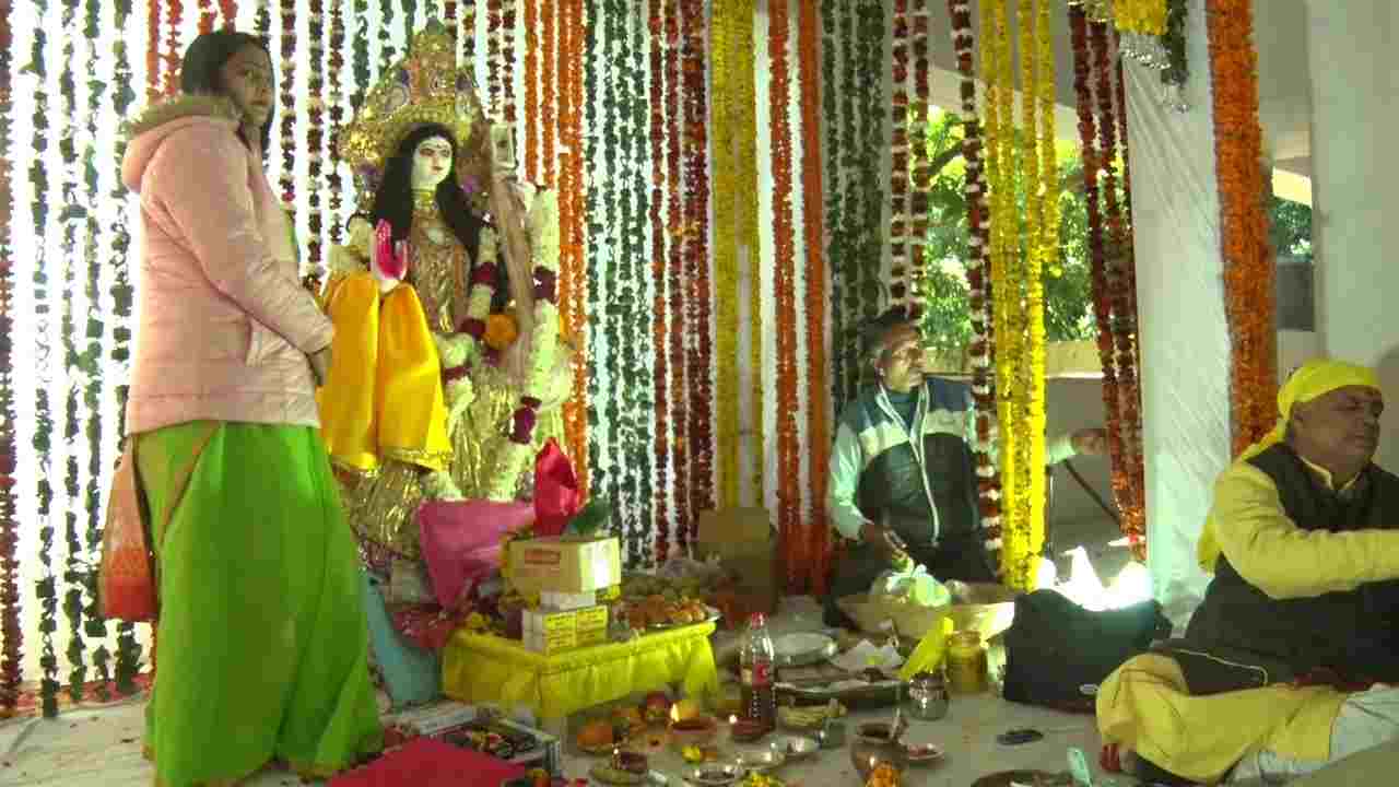 इन लोगों ने की सरस्वती की पूजा मे शिरकत