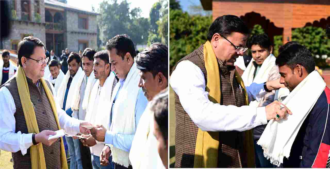 देहरादून: मुख्यमंत्री पुष्कर सिंह धामी ने गुरूवार को मुख्यमंत्री आवास में उत्तरकाशी के सिलक्यारा रेस्क्यू ऑपरेशन में टनल की खुदाई में अहम भूमिका निभाने वाले 12 रैट माइनर्स को शॉल ओढ़ाकर सम्मानित किया और सभी रैट माइनर्स को 50-50 हजार रूपये के सम्मान राशि के चेक भी प्रदान किये।