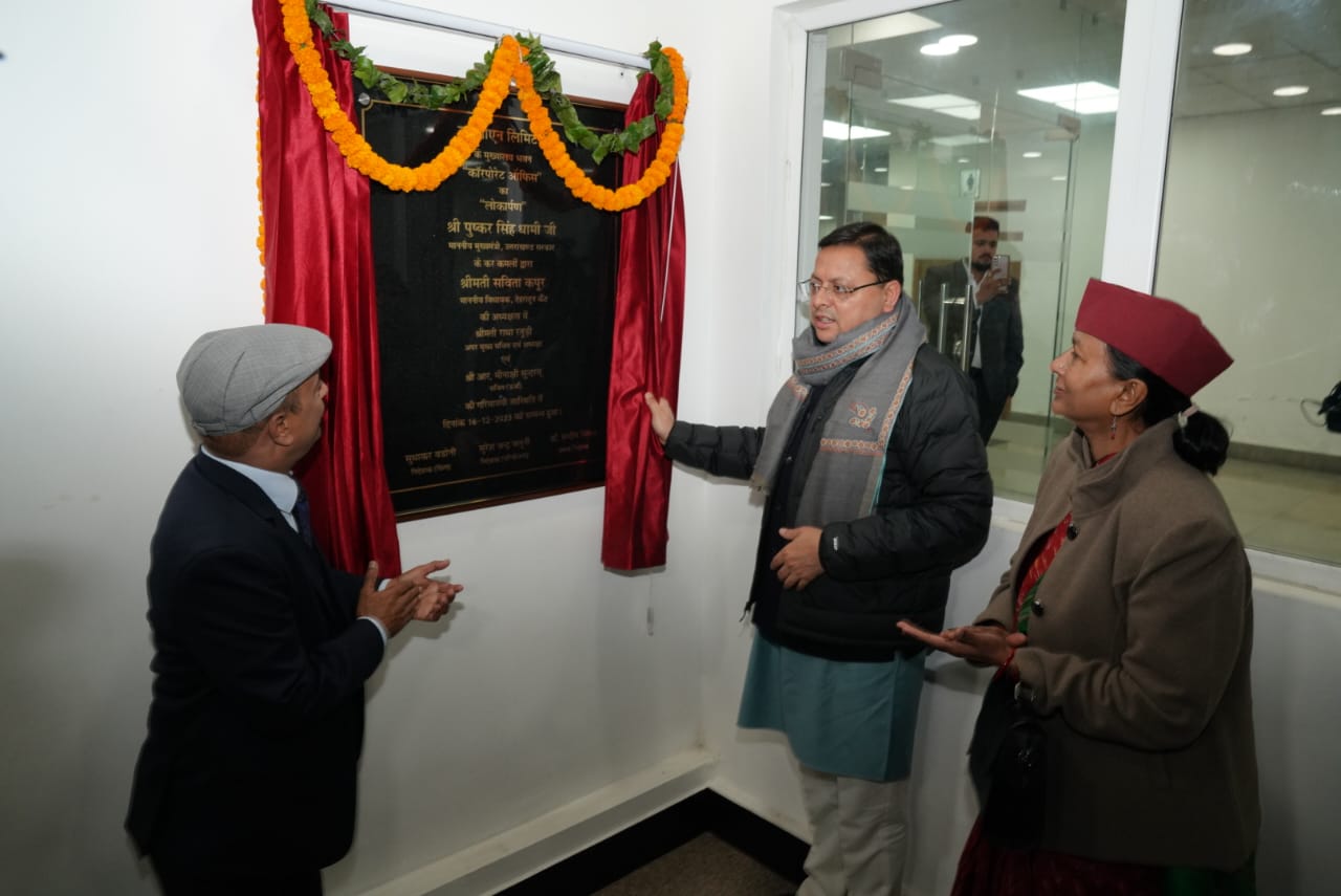 देहरादून: मुख्यमंत्री पुष्कर सिंह धामी शनिवार को सायं उत्तराखण्ड जल विद्युत निगम के 23वें स्थापना दिवस समारोह में शामिल हुए। इस अवसर पर मुख्यमंत्री को जल विद्युत निगम के एम.डी ने 20 करोड़ 09 लाख 58 हजार 211 रूपये का लाभांश का चेक भेंट किया। मुख्यमंत्री ने यूजेवीएनएल के कारपोरेट भवन का लोकार्पण के साथ ही सी.एम.आर के तहत सरस्वती विद्या इण्टर कॉलेज भानियावाला को दी गई बस को फ्लेग ऑफ कर रवाना किया।