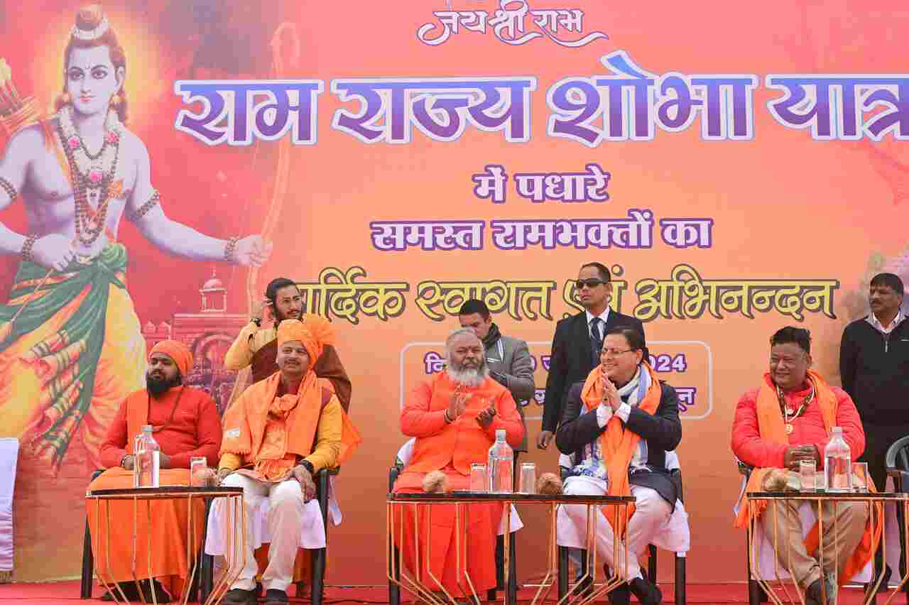 देहरादून: मुख्यमंत्री पुष्कर सिंह धामी ने शनिवार को परेड ग्राउंड देहरादून में राम मंदिर प्राण प्रतिष्ठा उत्सव समिति, द्वारा आयोजित “राम राज्य शोभायात्रा“ कार्यक्रम में प्रतिभाग किया। इस दौरान मुख्यमंत्री पुष्कर सिंह धामी ने कहा कि सभी राम भक्तों का 500 से अधिक वर्ष का इंतजार खत्म होकर भव्य राम मंदिर बनने का सपना पूरा हो रहा है। हजारों साधु संतों राम भक्तों, सनातन प्रेमियों के बलिदान के उपरांत इस पुण्य दिन के हम सब साक्षी बनेंगे।
