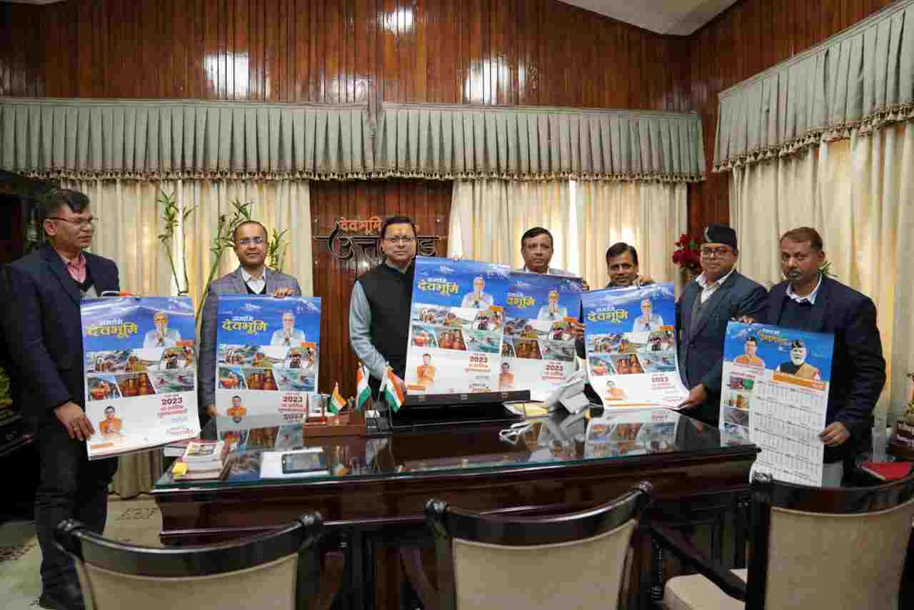 देहरादून: मुख्यमंत्री पुष्कर सिंह धामी ने शनिवार को मुख्यमंत्री कैम्प कार्यालय में सूचना एवं लोक सम्पर्क विभाग, उत्तराखण्ड के वार्षिक कलेण्डर नमामि देवभूमि ‘संकल्प नये उत्तराखण्ड का’ का विमोचन किया। इस वार्षिक कलेण्डर के माध्यम से उत्तराखण्ड के प्रमुख धार्मिक स्थलों, पर्यटन स्थलों, उत्तराखण्ड की शिल्पकला, चित्रकला, लोककला एवं पौराणिक मंदिरों की जानकारी फोटो के माध्यम से दी गई है। इस वार्षिक कलेण्डर में जन जागरूकता के दृष्टिगत महिला हेल्पलाईन नम्बर 1090, किसान कॉल सेंटर नम्बर 1551, सीएम हेल्पलाईन नम्बर 1905, चाइल्ड हेल्पलाईन नम्बर 1098, आयुष्मान उत्तराखण्ड हैल्पलाईल नम्बर 104 एवं आपदा कॉल सेंटर नम्बर 1070 की जानकारी भी दी गई है।