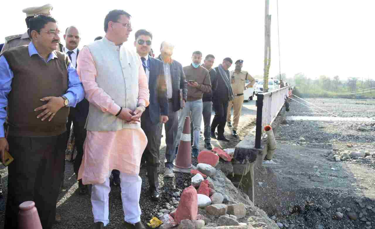 सीएम धामी ने किया सौंग पुल, ग्राम पंचायत खैरी मानसिंह में क्षतिग्रस्त सड़कें व पुश्तों के पुनर्निर्माण कार्यों का स्थलीय निरीक्षण, जल्द निर्माण कार्य पूरा करने के दिये निर्देश
