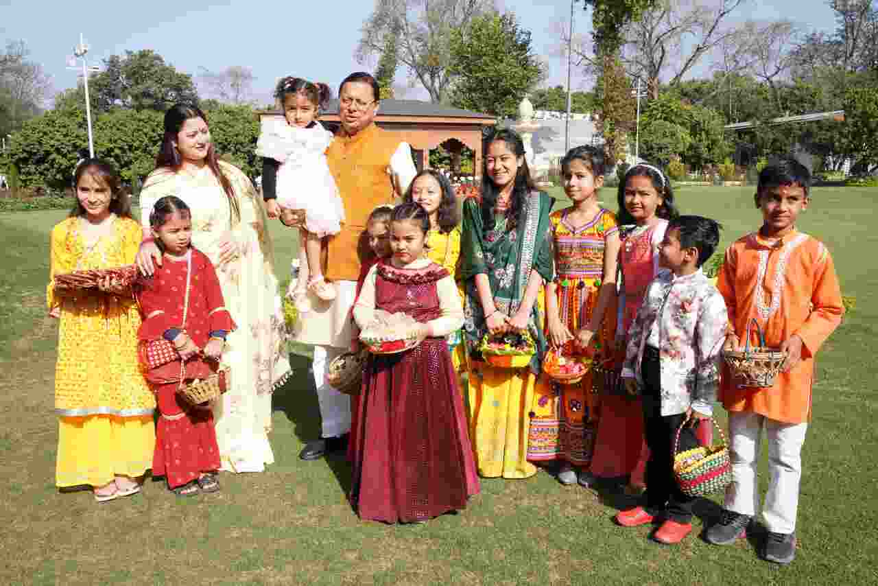 देहरादून: मुख्यमंत्री पुष्कर सिंह धामी की उपस्थिति में मुख्यमंत्री आवास में रंग बिरंगे परिधानों में सजे बच्चों ने देहरी में फूल व चावल बिखेरकर पारंपरिक गीत ‘फूल देई छमा देई, जतुक देला, उतुक सई, फूल देई छमा देई, देड़ी द्वार भरी भकार’ गाते हुए त्योहार की शुरुआत की। इस अवसर पर मुख्यमंत्री ने सभी बच्चों को आशीर्वाद देते हुए उनके उज्ज्वल भविष्य की कामना की।