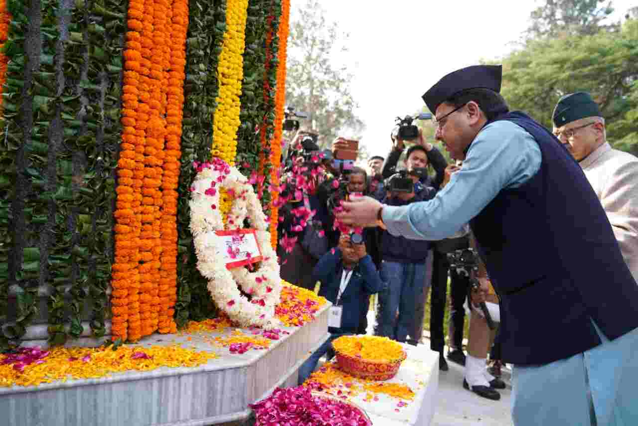 सीएम धामी ने विजय दिवस के अवसर पर शहीद स्मारक पर पुष्प चक्र अर्पित कर शहीदों को दी श्रद्धांजलि
